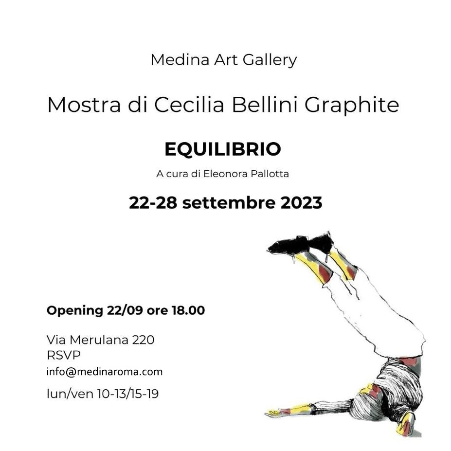 Dal 22 al 28 settembre 2023 Medina Art Gallery Roma presenta la mostra personale di Cecilia Bellini Graphite “Equilibrio”, nella gallery di Via Merulana 220 a cura di Eleonora Pallotta.