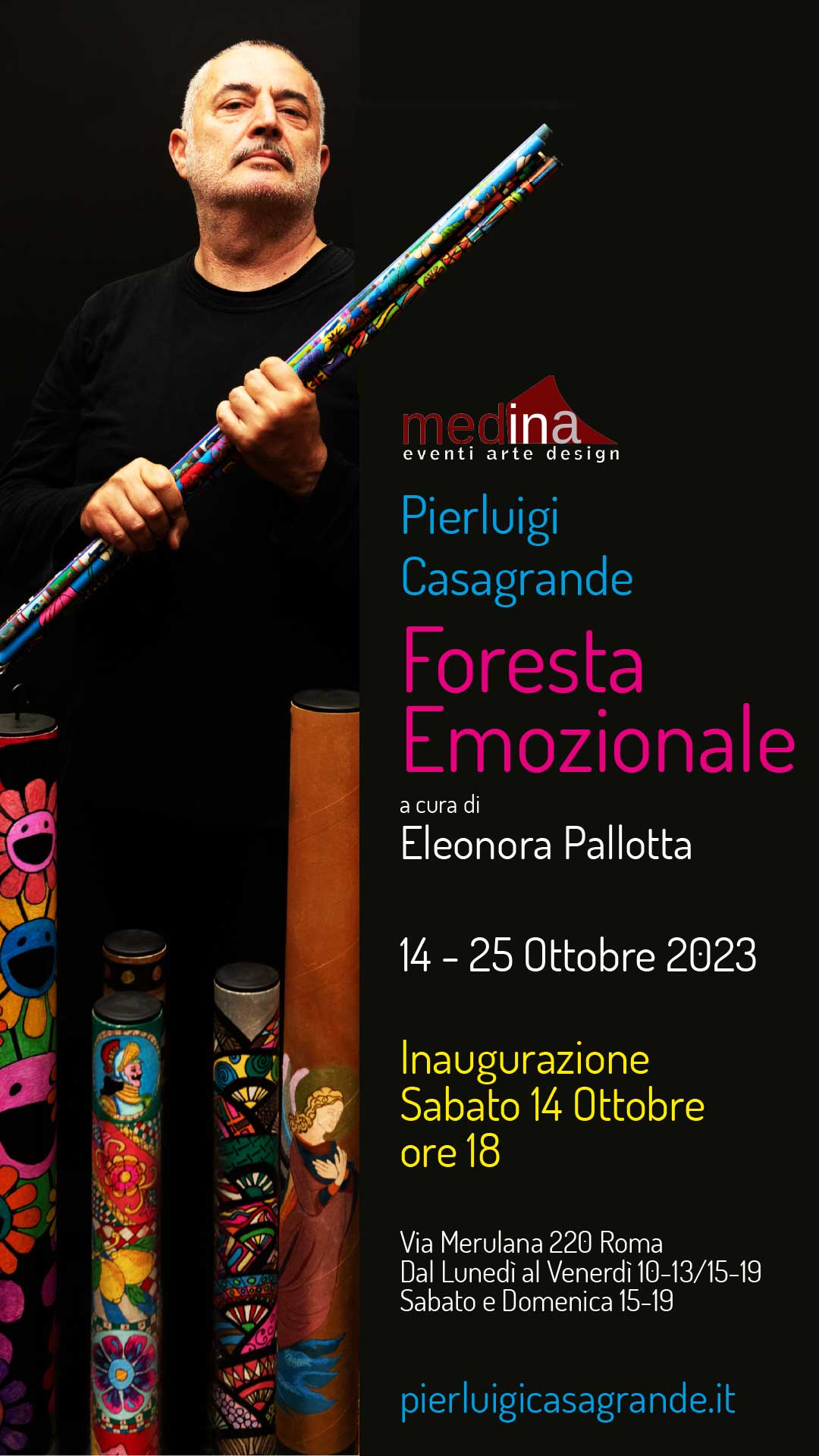 Dal 14 al 25 ottobre 2023 Medina Art Gallery presenta “Foresta emozionale”, mostra personale del pittore tubista Pierluigi Casagrande a cura di Eleonora Pallotta nella galleria di Via Merulana 220 a Roma.