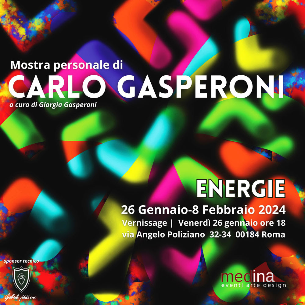 Dal 26 gennaio all'8 febbraio 2024, Medina Art Gallery presenta la mostra personale di Carlo Gasperoni “Energie”, nella galleria di Via Angelo Poliziano 32-34 a Roma, a cura di Giorgia Gasperoni e con il testo critico di Camilla Boemio.