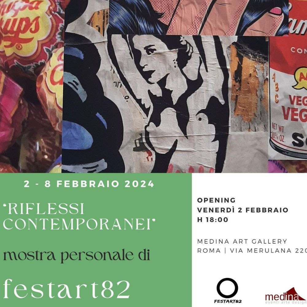 Dal 2 all'8 Febbraio 2024, Medina Art Gallery presenta “Riflessi contemporanei”, mostra personale di FestArt82 nella gallery di Via Merulana 220 a Roma.