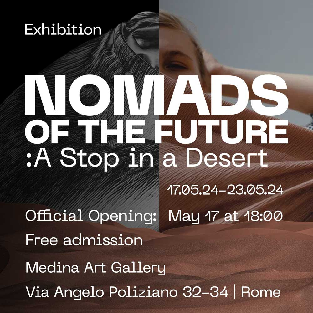 Fino al 23 Maggio 2024 “NOMADS OF THE FUTURE: A Stop in a Desert" l'International Collective Exhibition nella gallery di Via Angelo Poliziano 32-34 a Roma.