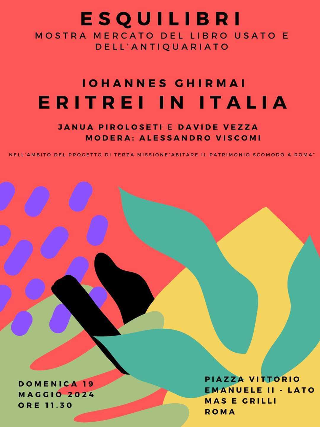 - Alle ore 11:30 Iohannes Ghirmai dialoga del suo libro "Eritrei in Italia" con gli studenti di Antropologia del dipartimento SARAS Sapienza