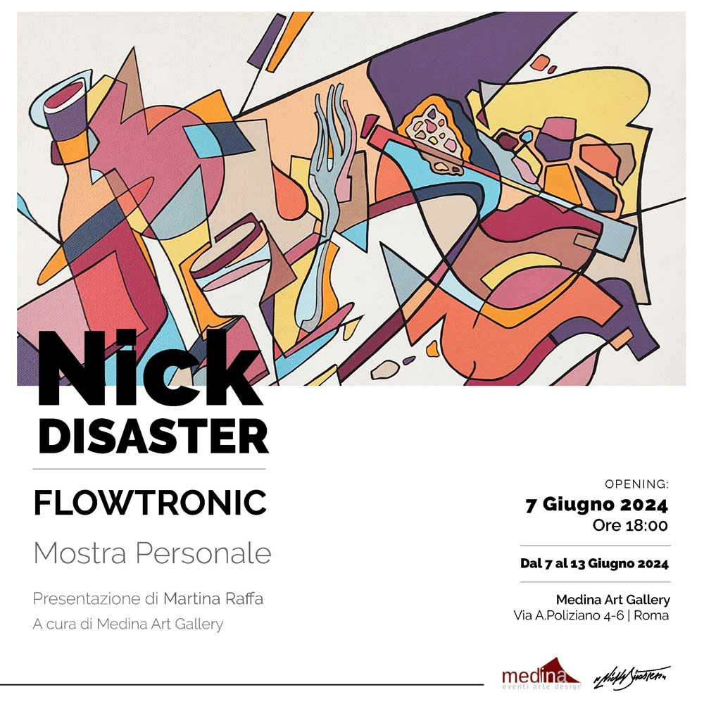 Fino al 13 giugno 2024 “FlowTronic" la Mostra Personale di Nick Disaster con testo critico e presentazione a cura di Martina Raffa presso la gallery di Via Angelo Poliziano 4-6 a Roma.