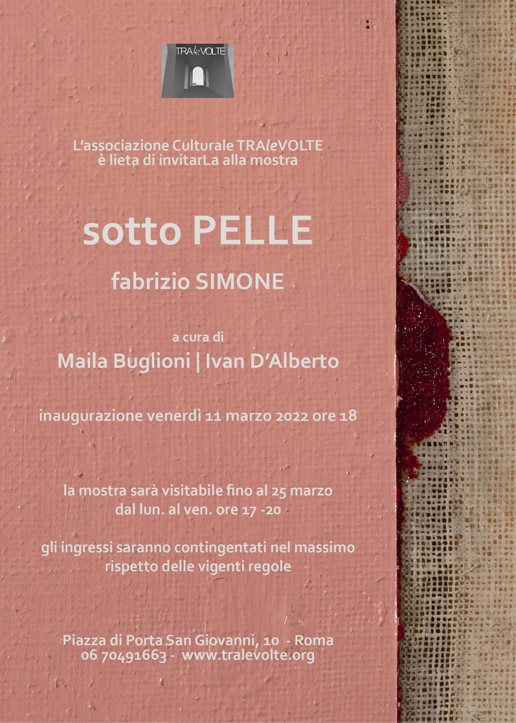 Sotto PELLE è il titolo della mostra che l’artista Fabrizio Simone inaugurerà venerdì 11 marzo, alle ore 18.00, presso l’Associazione culturale TRAleVOLTE di Roma, diretta da Francesco Pezzini.