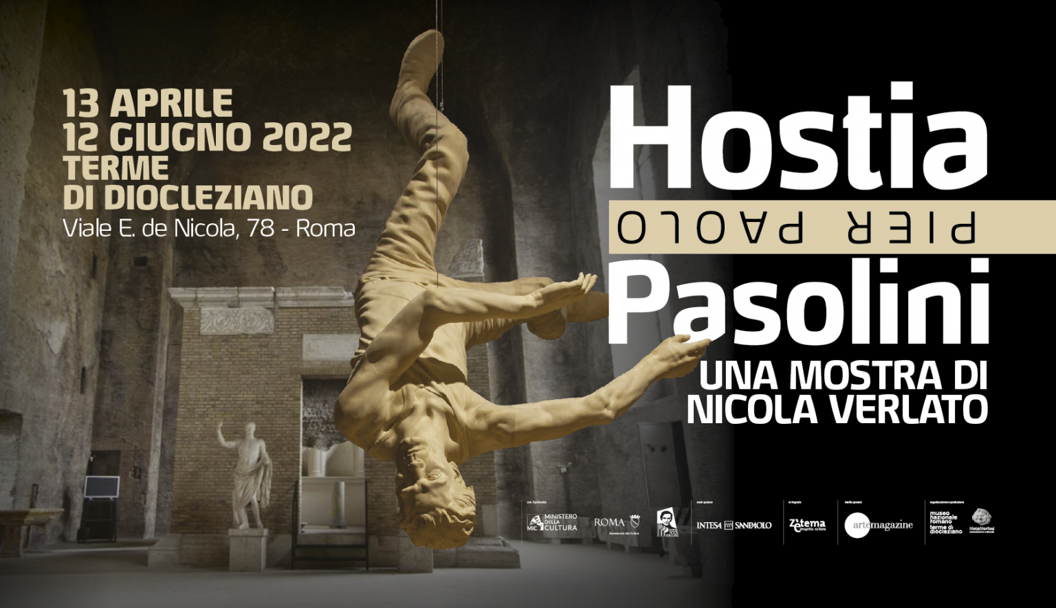Hostia. Pier Paolo Pasolini è il progetto espositivo ideato dall’artista Nicola Verlato e curato da Lorenzo Canova, con la partecipazione, tra gli altri, di Vittorio Sgarbi, Umberto Croppi e Miguel Gotor, prodotto e organizzato da Associazione MetaMorfosi e Museo Nazionale Romano – Terme di Diocleziano con il sostegno di Intesa Sanpaolo, in occasione del centenario della nascita dell’artista, nato a Bologna il 5 marzo 1922 e morto a Roma nel 1975.