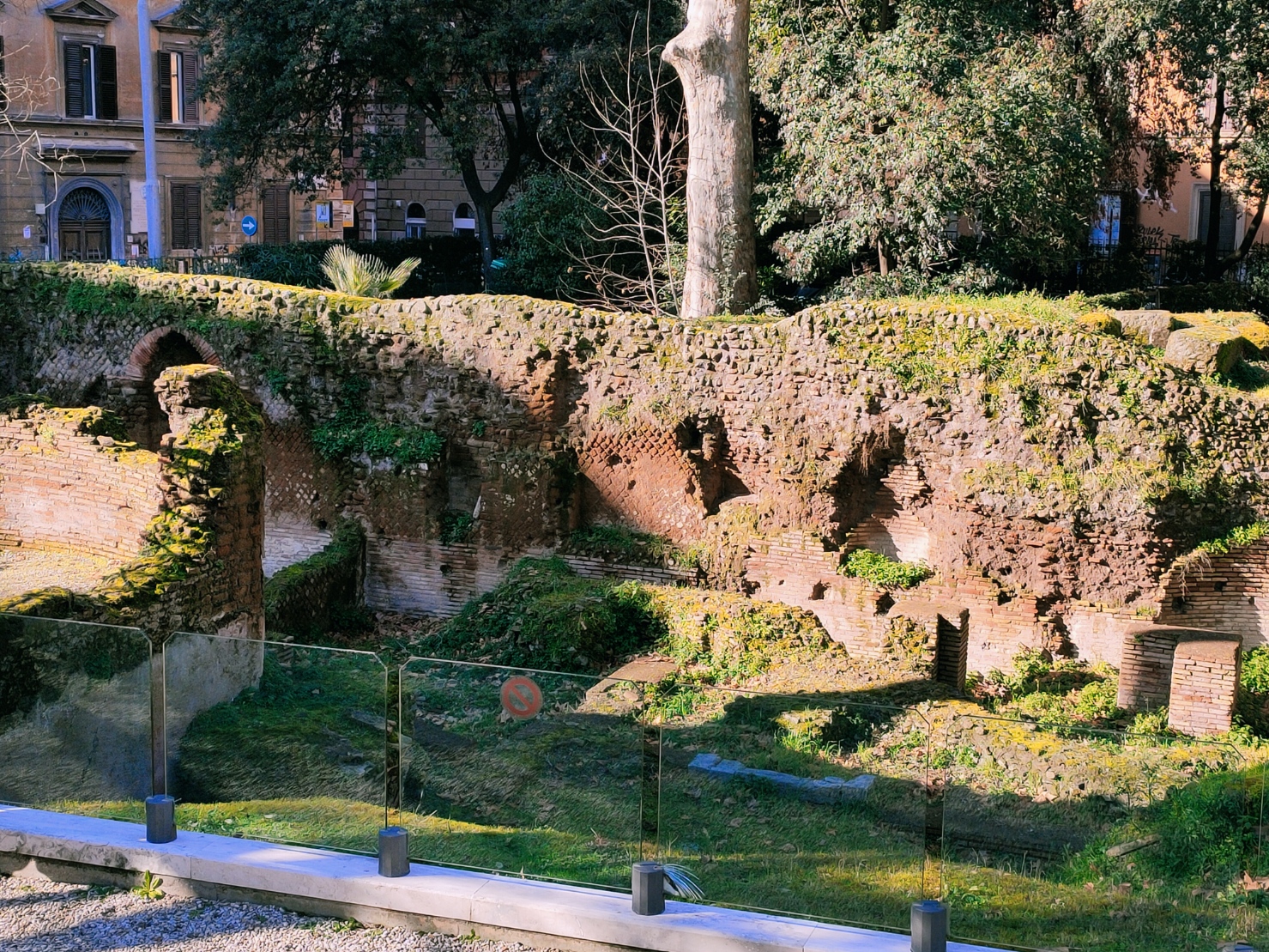 Un profondo fossato esterno contribuiva a rafforzare il sistema difensivo delle mura: in quest’area lo si può ancora individuare perché a partire dalla prima età imperiale, quando venne meno la necessità di difendere la città, in parte venne colmato e poi occupato dalla costruzione di un edificio, forse un’insula, di cui gli scavi hanno evidenziato lo sviluppo e l’utilizzo fino almeno al III sec.d.C.