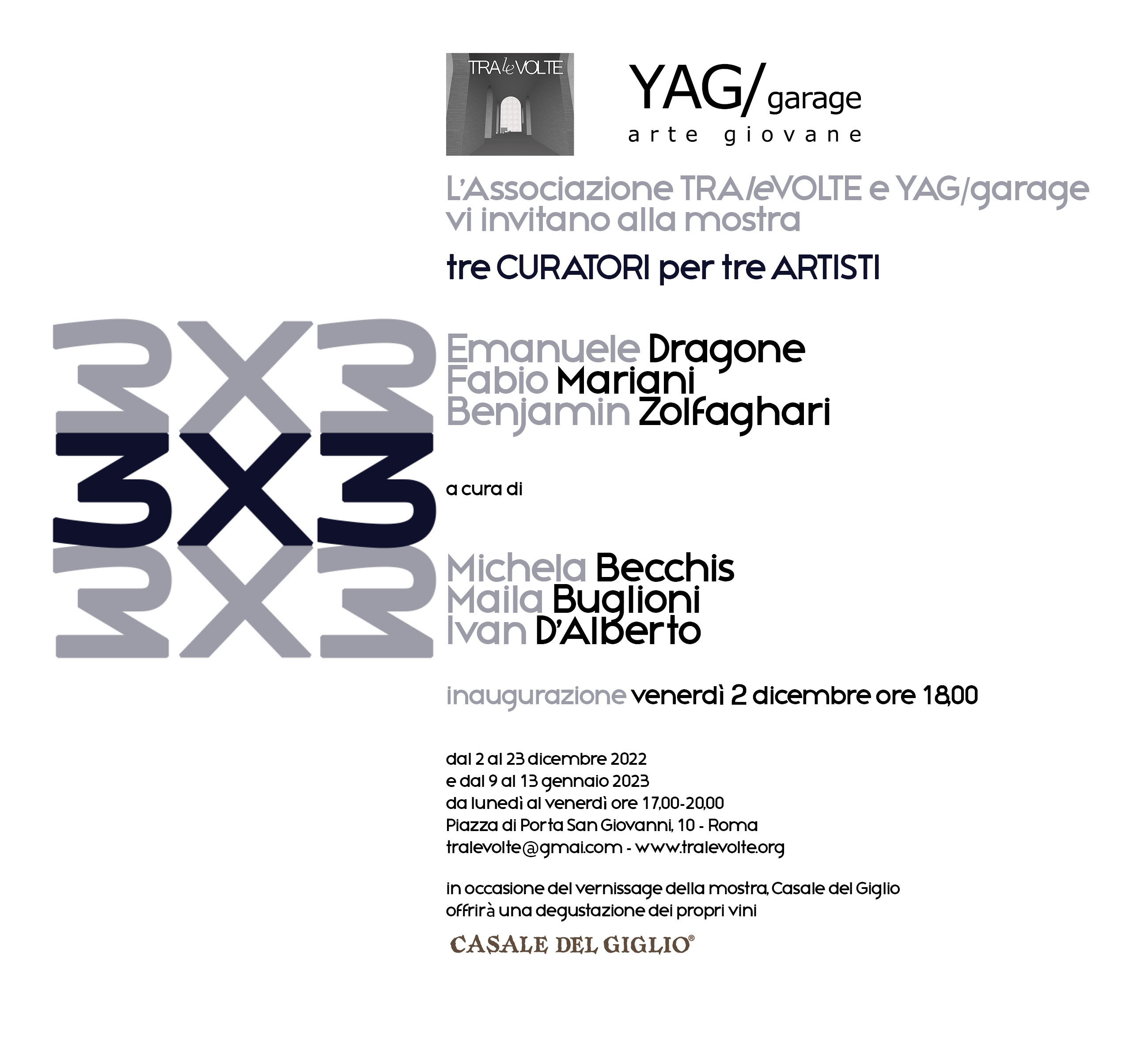 3 x 3 = tre CURATORI per tre ARTISTI