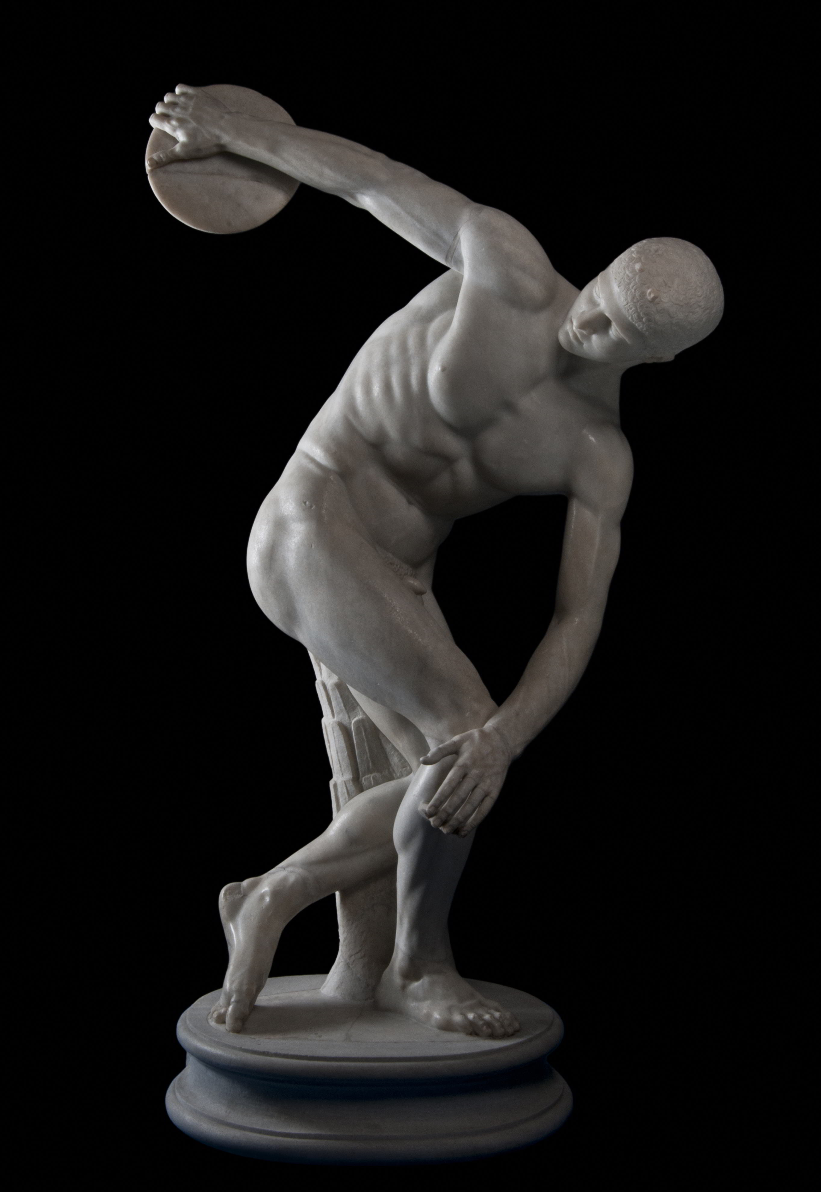 La statua del Discobolo rappresenta un atleta nella posizione idonea al lancio del disco. La scultura è una copia romana della celebre opera greca in bronzo di Mirone del V secolo ...