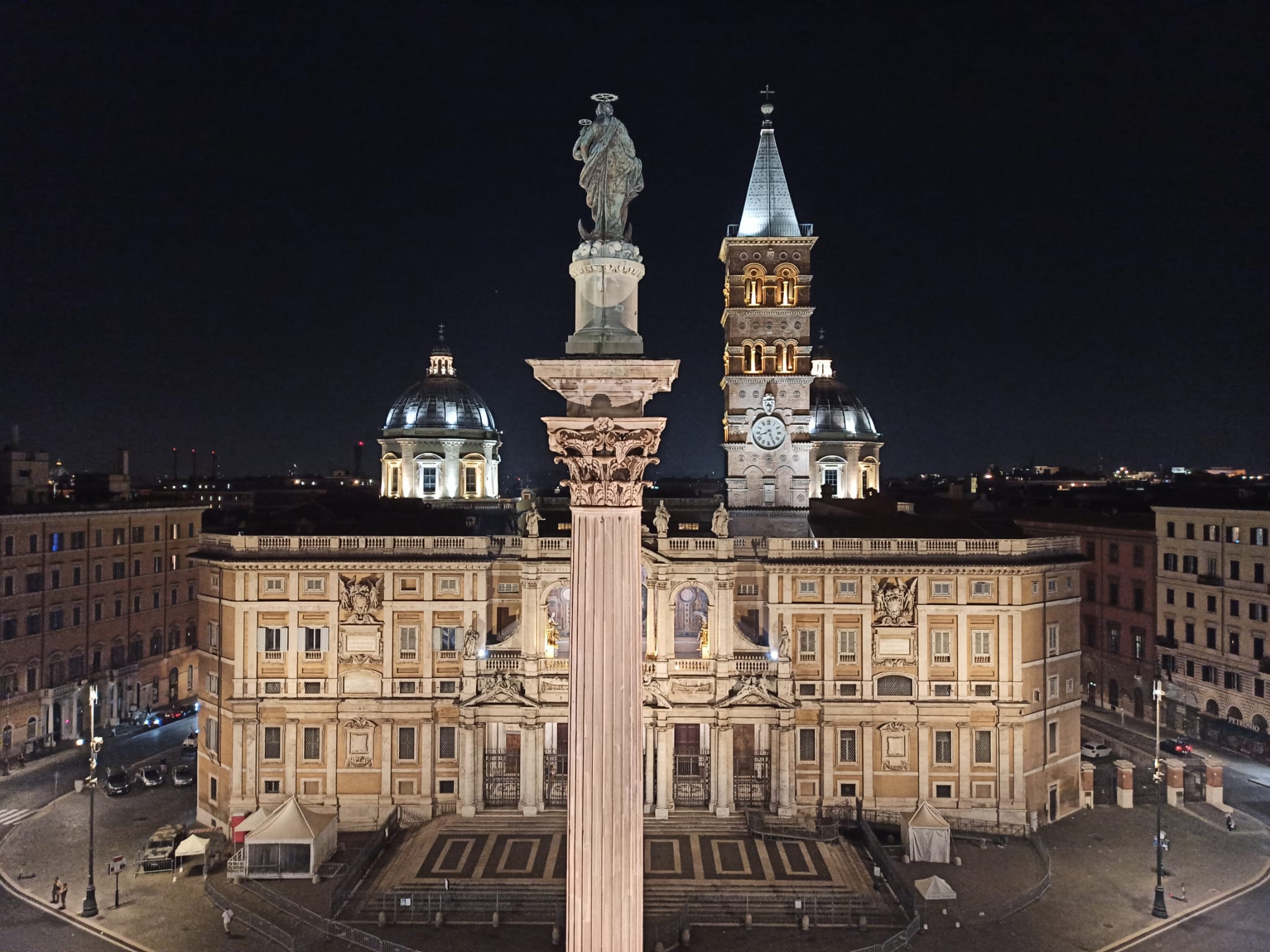 La Basilica di Santa Maria Maggiore è una delle quattro basiliche papali di Roma. Voluta da papa Sisto III in onore al titolo di Maria Madre di Dio sancito dal Concilio di Efeso (431 d.C.), viene edificata nella prima metà del V secolo d. C. La leggenda la vuole legata all’episodio miracoloso della nevicata di Ferragosto avvenuto nel secolo precedente.