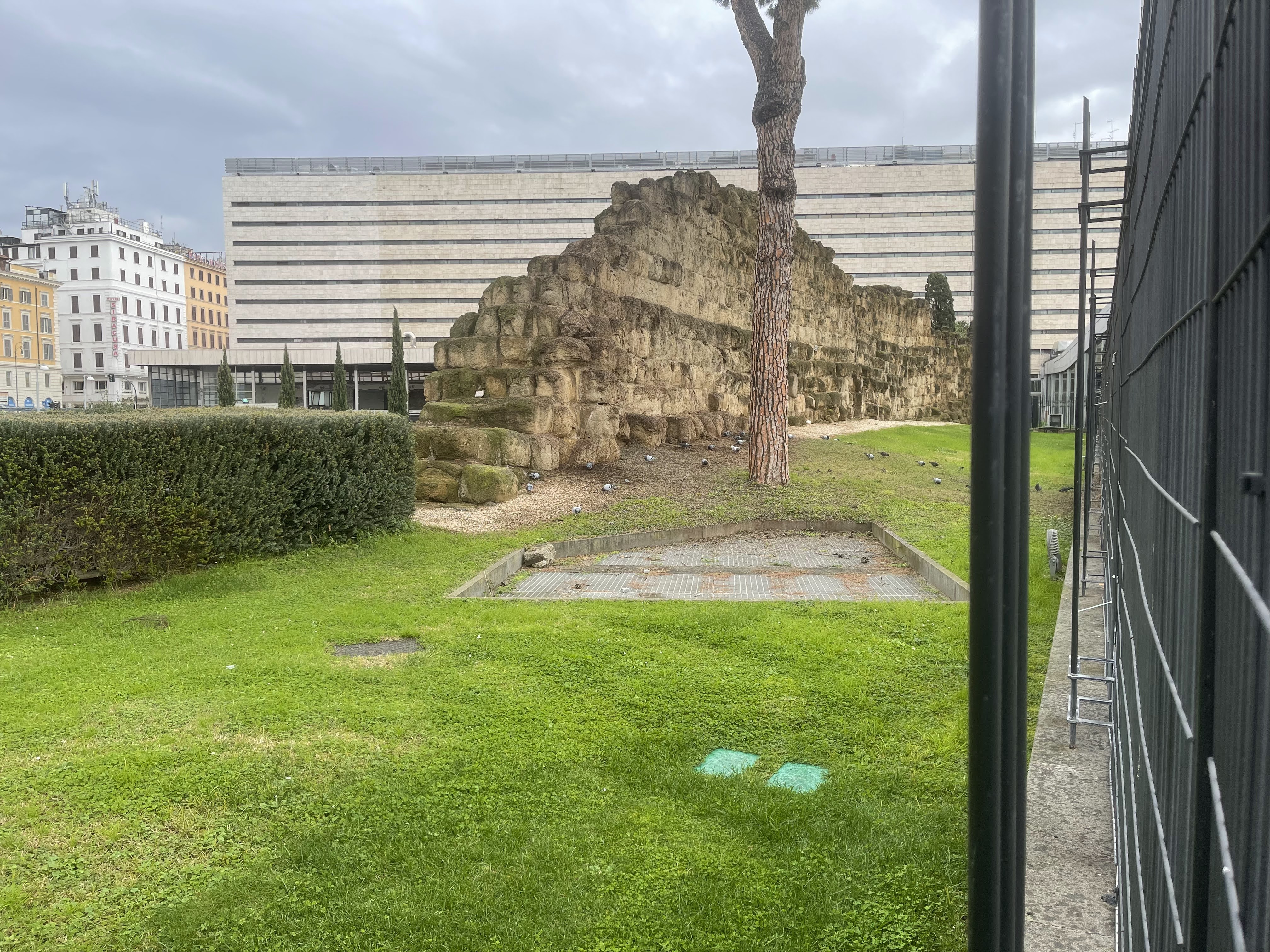Di questo complesso rimangono alcuni tratti ancora visibili negli scavi fatti nel giardino dell’Acquario Romano e nei pressi della stazione Termini; questi ultimi, databili al IV secolo, sostituiscono probabilmente la cinta originaria serviana, rovinata dall’invasione gallica del 390 a. C.