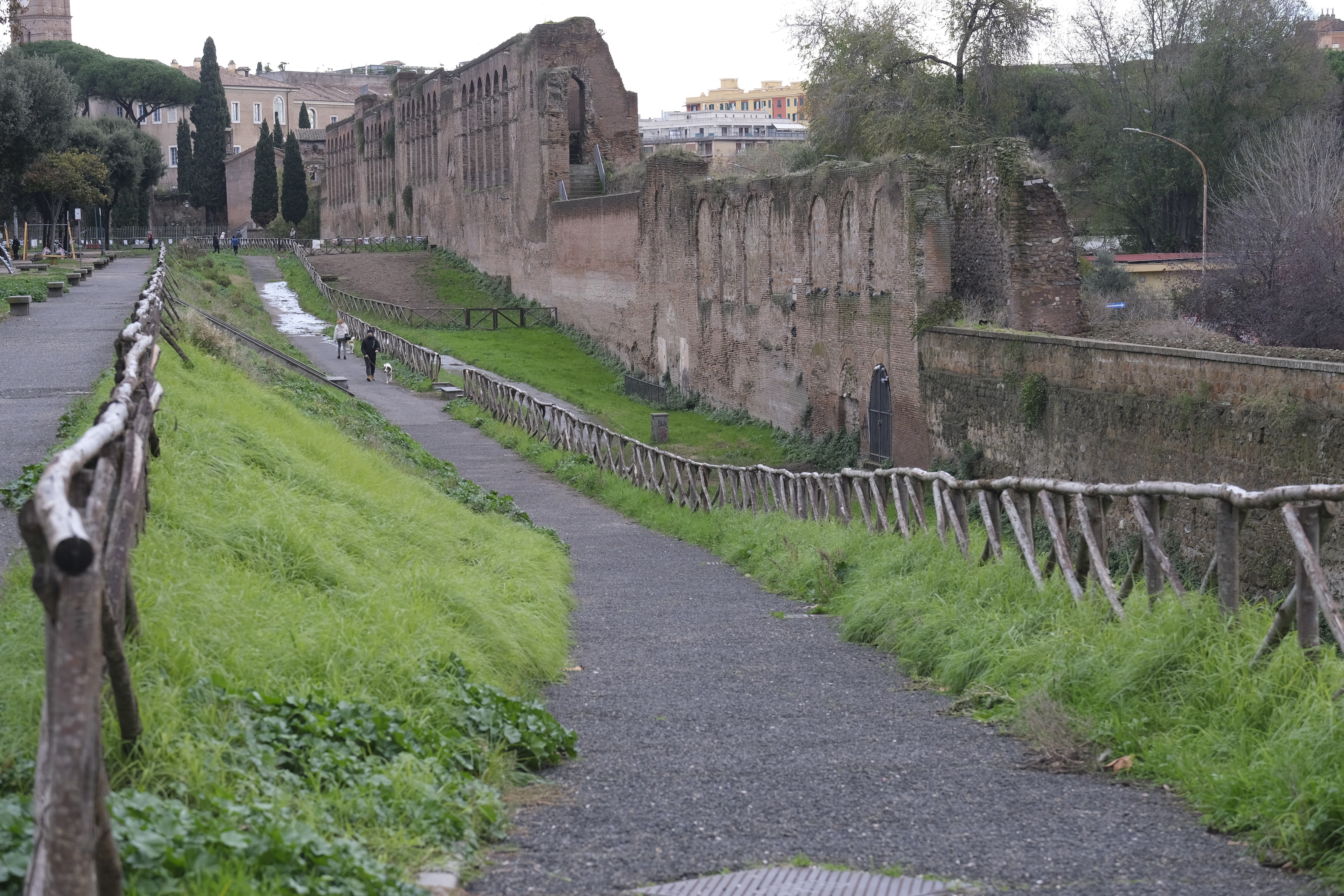 Dopo il 1870, con i lavori edilizi per la costruzione del nuovo quartiere l’area, privata progressivamente degli alberi, versava in uno stato di abbandono. Nel 1910 furono addossati alle Mura tre capannoni dell’azienda trasporti (A.T.M.) destinati al deposito delle vetture. Soltanto nel 1925, su progetto di Raffaele De Vico, fu definita un’area a giardino che valorizzava la prospettiva delle due basiliche e delle mura anche grazie alla collocazione del Monumento a San Francesco (1927 )di Giuseppe Tonnini.