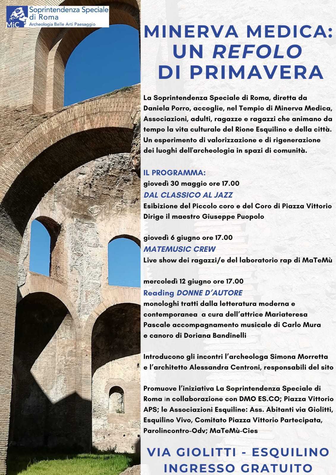 La Soprintendenza Speciale di Roma, diretta da Daniela Porro, accoglie, nel Tempio di Minerva Medica, Associazioni, adulti, ragazze e ragazzi che animano da tempo la vita culturale del Rione Esquilino e della città.