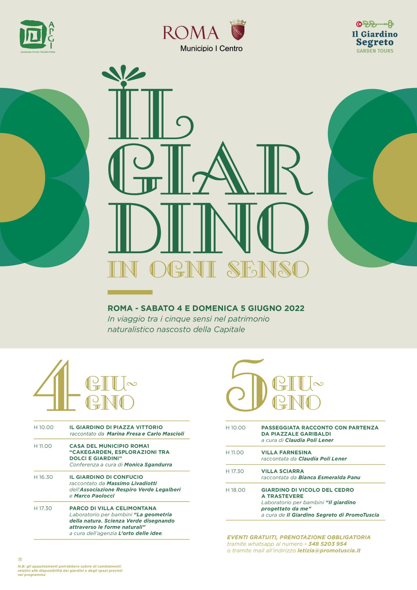 Gli eventi prevederanno delle visite guidate lungo i giardini più caratteristici del Rione Esquilino; ne verranno raccontate storie, natura e fioriture, sottolineando la loro importanza nel contesto urbano che li circonda.