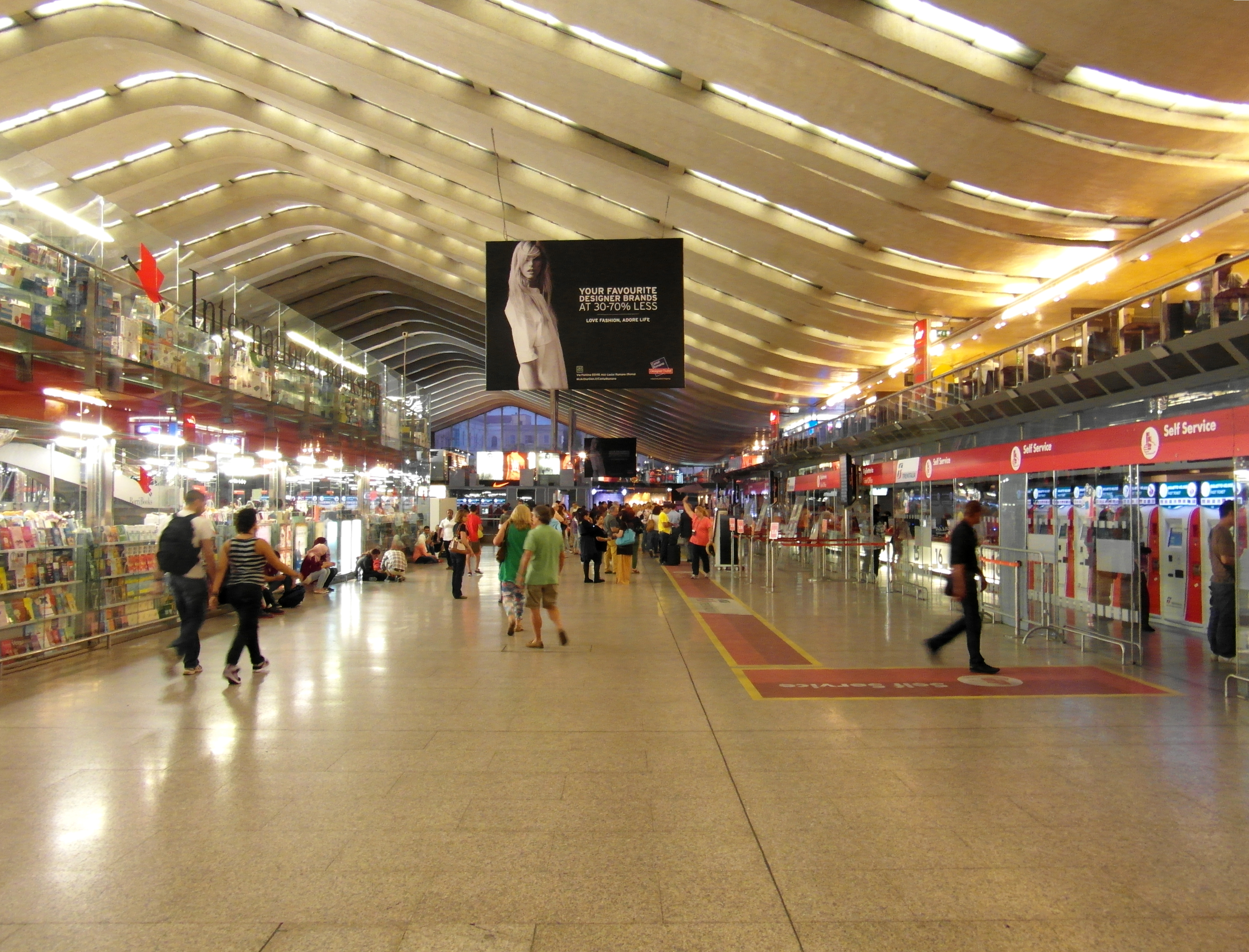 A destra si trova la galleria di testa che dà accesso ai binari, mentre a sinistra si accede al grande atrio vetrato, un esempio significativo dell'architettura italiana del Dopoguerra, coperto dalla pensilina in cemento armato degli anni Cinquanta e in stretta in relazione con la piazza antistante e i resti dell'aggere Servianus. All'uscita su via Marsala, la strada è caratterizzata da una combinazione di architettura contemporanea, come il Palazzo dell'ACI, e facciate ottocentesche, con l'Arco di Sisto V che chiude la prospettiva in un contrasto spiazzante con il muro della stazione.