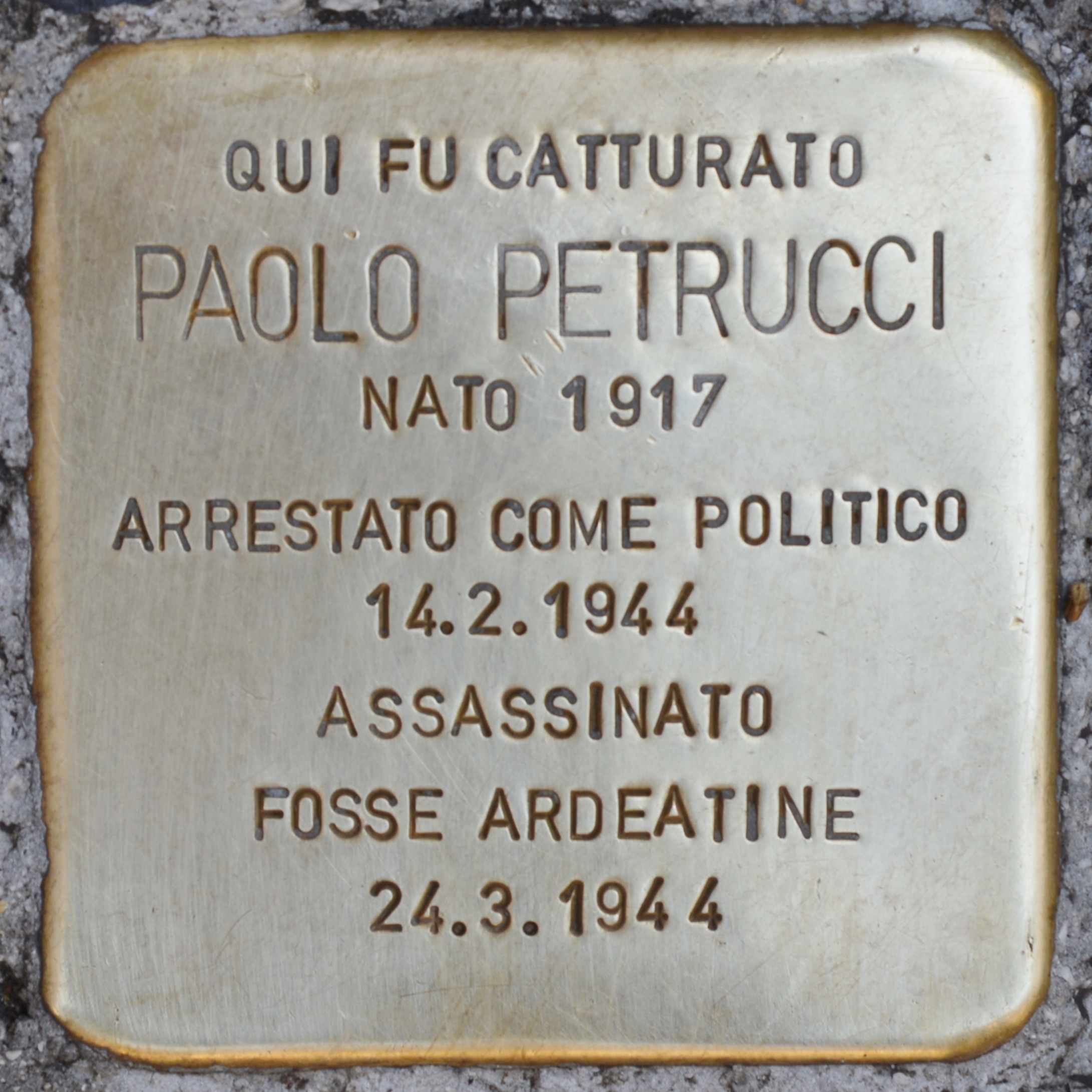 Questa pietra d’inciampo ricorda Paolo Petrucci e l’incisione che vi è apposta ce ne racconta la storia. Era militare a Roma l'8 settembre 1943 e partecipò ai primi scontri con ...