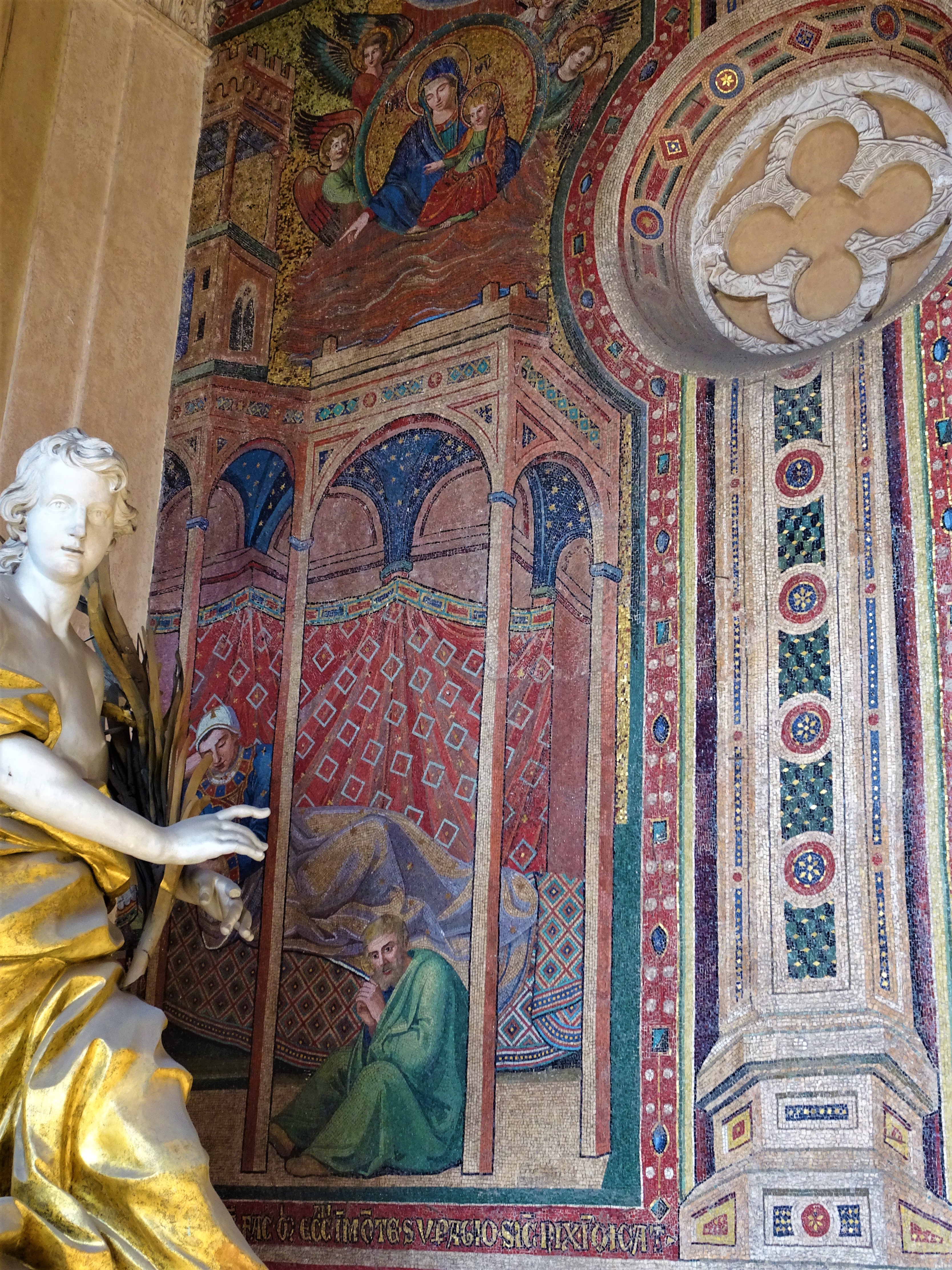 La Basilica di Santa Maria Maggiore è una delle quattro basiliche papali di Roma. Voluta da papa Sisto III in onore al titolo di Maria Madre di Dio sancito dal Concilio di Efeso (431 d.C.), viene edificata nella prima metà del V secolo d. C. La leggenda la vuole legata all’episodio miracoloso della nevicata di Ferragosto avvenuto nel secolo precedente.