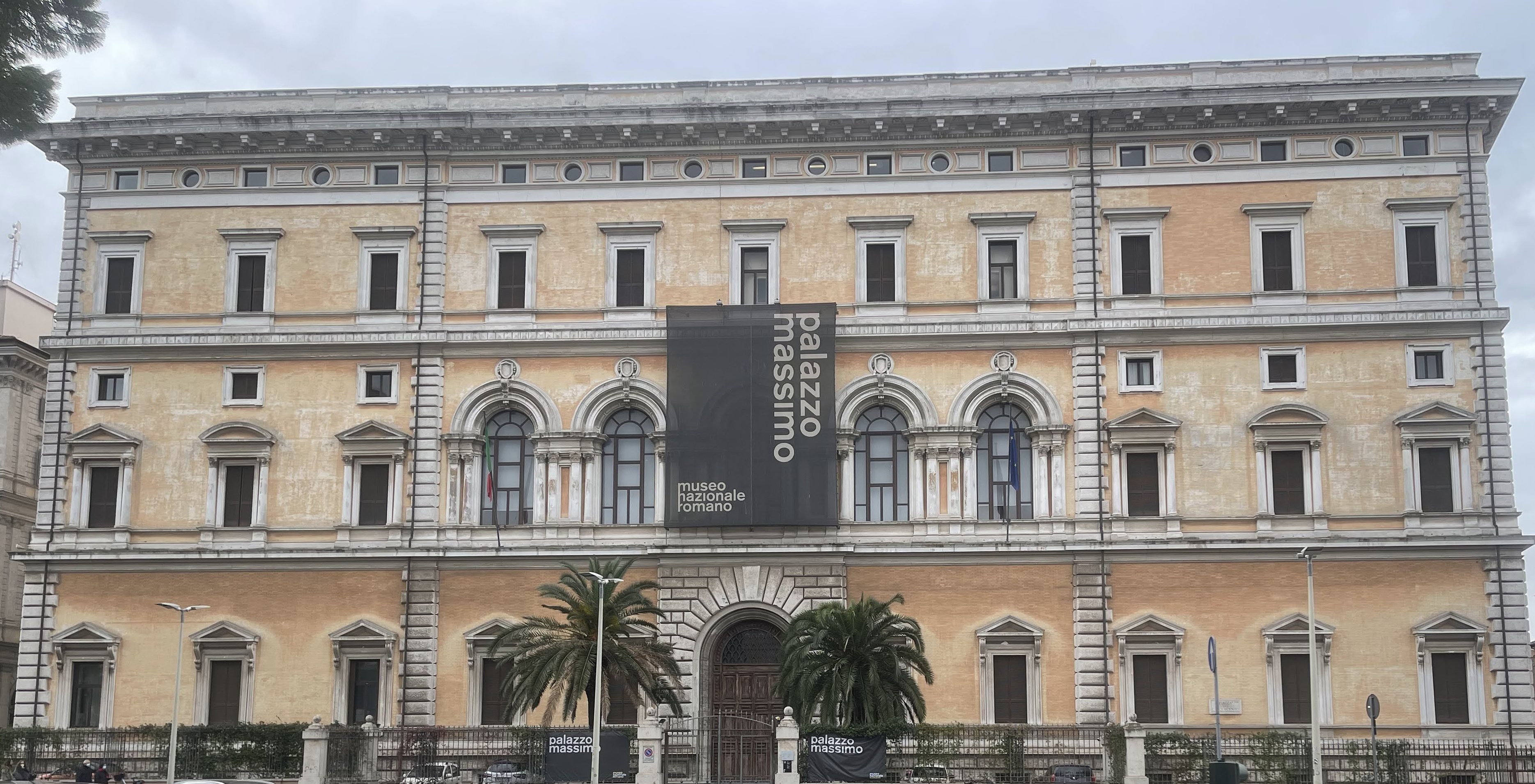 Ispirato ai grandiosi palazzi cinquecenteschi, Palazzo Massimo fu edificato tra il 1883 e il 1887 dal padre gesuita Massimiliano Massimo, su progetto di Camillo Pistrucci, per ospitare la nuova sede del Collegio dei Gesuiti. Nel 1981 il Palazzo fu acquisto dallo Stato per diventare una delle nuove sedi del Museo Nazionale Romano. Il radicale rinnovamento dell’edificio fu affidato a Costantino Dardi e, nel 1998, il Palazzo aprì al pubblico. Da allora numerosi interventi hanno movimentato l’originario allestimento intrecciando i diversi fili dell’esposizione condotta secondo un criterio cronologico e tematico che, nel richiamarsi ai contesti di ritrovamento, crea la suggestione dell’affastellarsi di opere diverse come nelle affollate collezioni cinquecentesche. Attraversare le sale di Palazzo Massimo è oggi come sfogliare le pagine di un libro meraviglioso. Tra i suoi quattro piani si incontrano alcuni tra i maggiori capolavori dell’intera produzione artistica del mondo romano: sculture, rilievi, affreschi, mosaici, stucchi e sarcofagi, provenienti, come tutto il patrimonio del Museo Nazionale Romano, dagli scavi effettuati a Roma e nel territorio circostante a partire dal 1870.