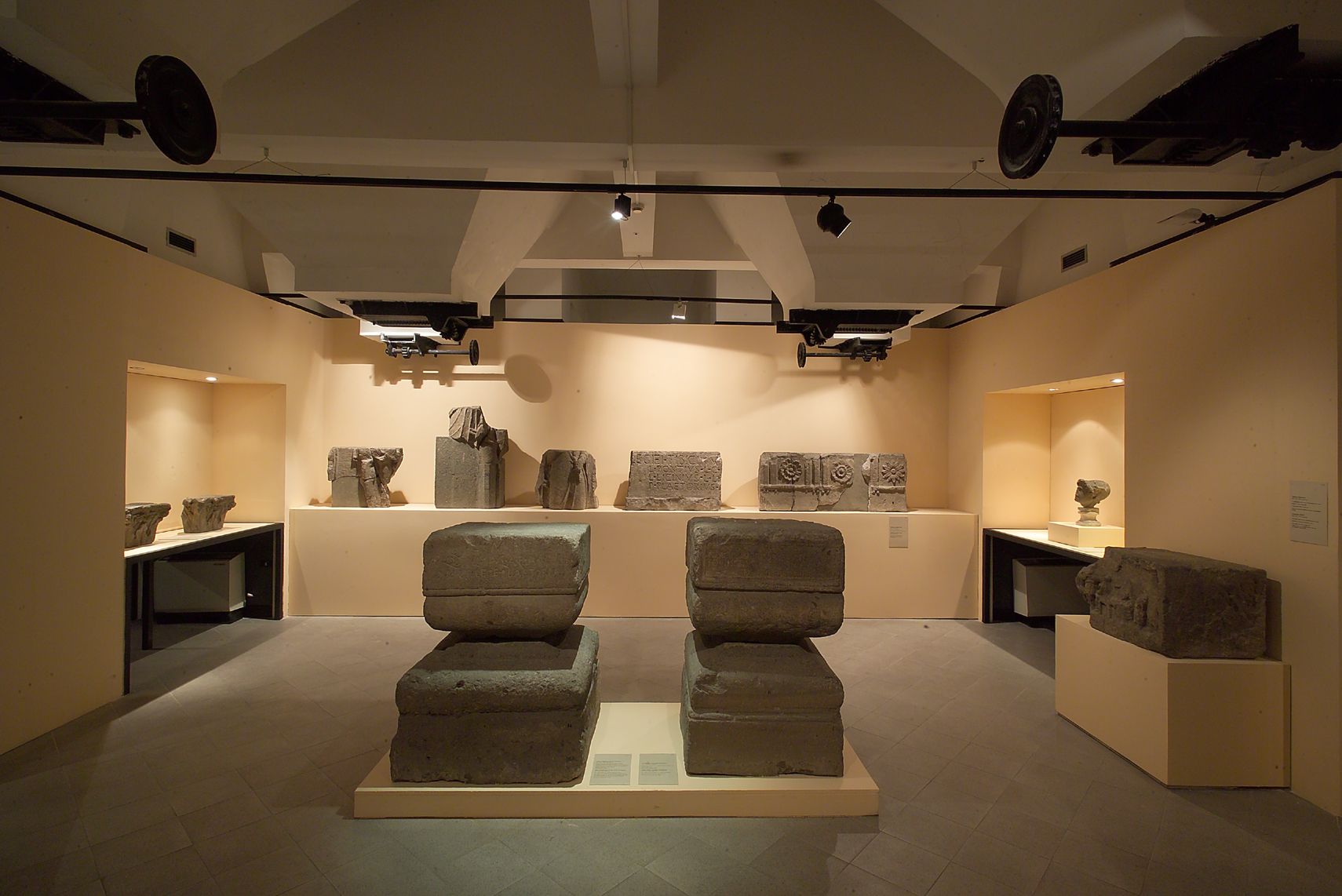 Ancora proveniente dagli Horti Lamiani è la sontuosa tazza marmorea decorata a girali d’acanto proveniente dagli scavi fatti dopo il 1870 tra piazza Dante e via Ariosto.